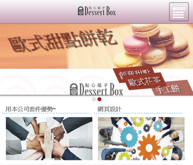 輪播式廣告有填入標題如:歐式甜點餅乾@創意甜點@歐式花茶@手工餅乾